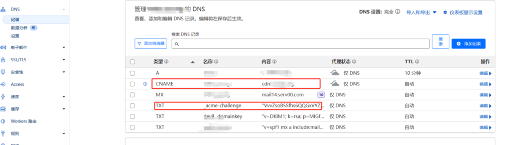 B域名的DNS设置创建C域名 IP指向服务器 需要打开小黄云